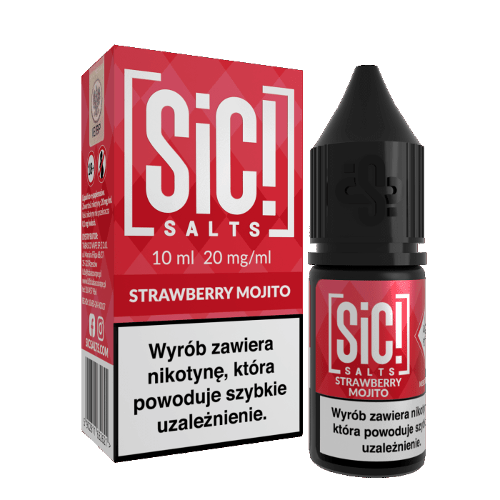 SALT SIC! Mojito Strawberry to orzeźwiający liquid z solą nikotynową, łączący słodką, soczystą truskawkę z klasycznym smakiem mojito – świeżą miętą i kwaśną limonką. Ta harmonijna mieszanka owocowych nut i chłodzącej świeżości tworzy idealny balans między słodyczą a orzeźwieniem, doskonały na każdą porę dnia.