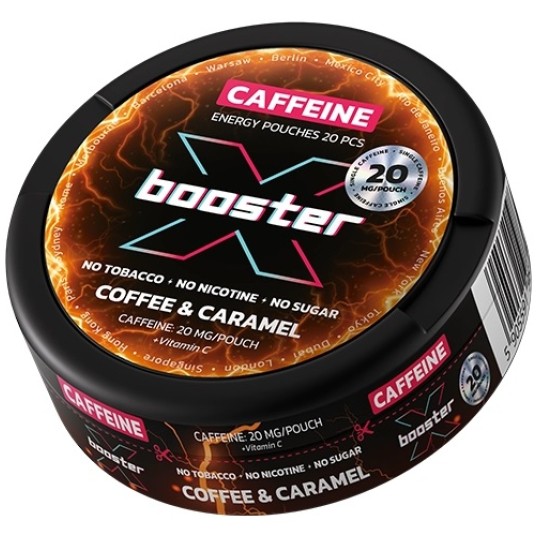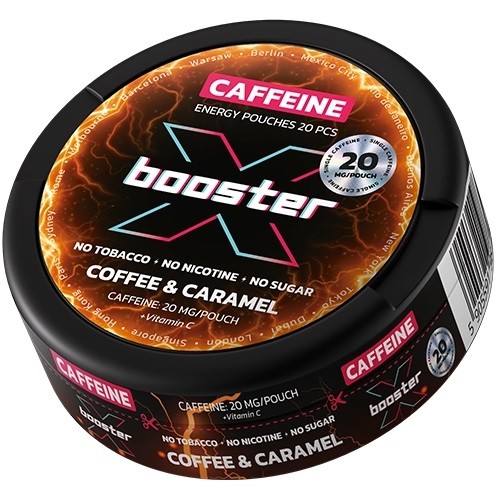 X-Booster 20mg Coffee Caramel to saszetki kofeinowe stworzone dla osób, które chcą dodać sobie energii bez tytoniu i bez nikotyny. Intensywny smak aromatycznej kawy połączony ze słodkim karmelem tworzy świetne połączenie – idealne na poranne rozkręcenie albo szybki zastrzyk energii w ciągu dnia.