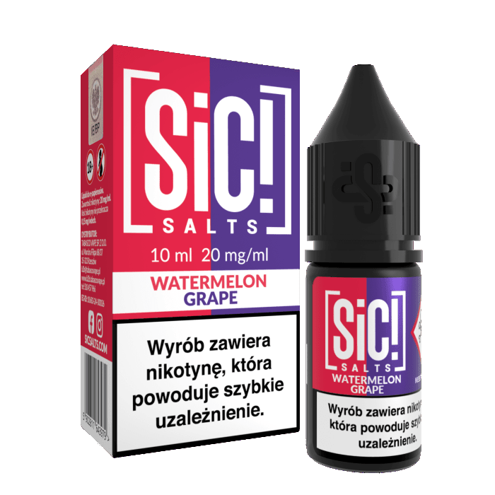 SALT SIC! Watermelon Grape to liquid, który dostarczy Ci owocowej świeżości i orzeźwienia z każdą chmurą, idealny na każdą porę dnia.