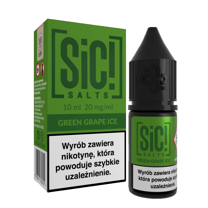SALT SIC! Green Grape Ice to liquid, który ożywia zmysły i chłodzi przy każdym zaciągnięciu – idealny dla tych, którzy szukają świeżości i owocowego orzeźwienia.