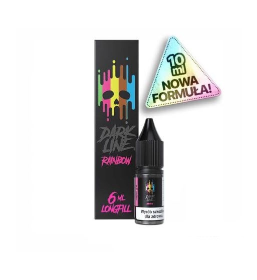 Longfill Dark Line 6/10 ml – Rainbow to intensywna, soczysta mieszanka owoców cukierkowych, inspirowana klasycznymi tęczowymi słodyczami. Aromat łączy w sobie słodkie i lekko kwaskowe nuty, tworząc pełny, wyrazisty i przyjemnie owocowy profil smakowy, który zachwyca już od pierwszego zaciągnięcia.