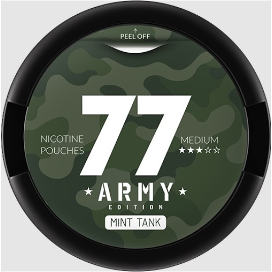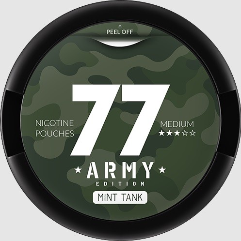 77 Army Edition – Mint to specjalna, limitowana wersja popularnych saszetek nikotynowych 77, stworzona dla użytkowników ceniących moc, świeżość i wyrazisty styl. Aromat Mint to intensywna, krystalicznie czysta mięta, która zapewnia mocne, chłodne uderzenie oraz długotrwałe odświeżenie, idealne do stosowania na co dzień.